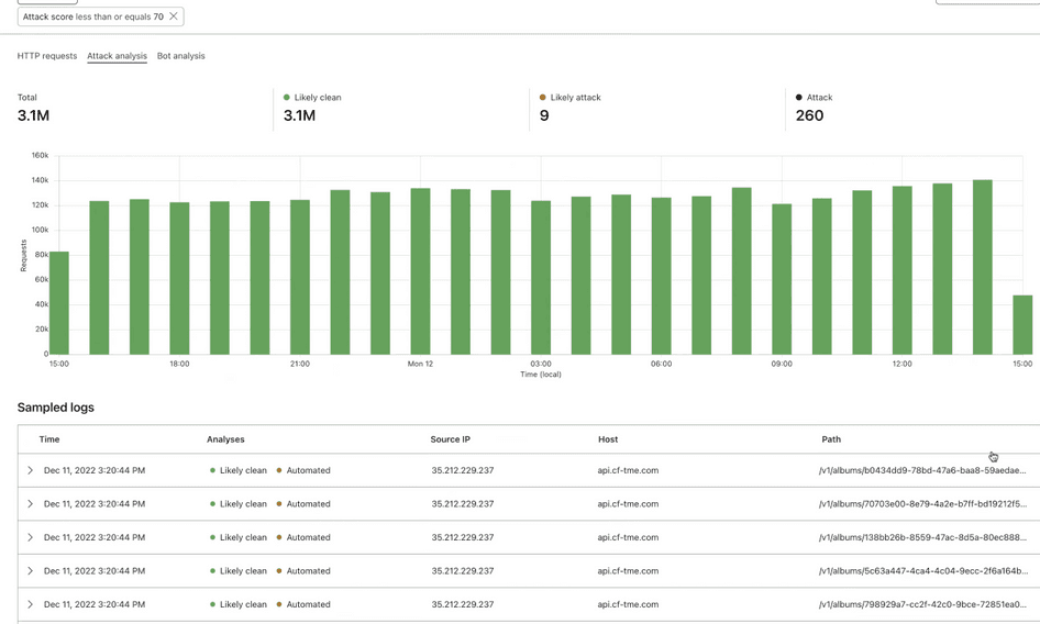 Bảng điều khiển phân tích bảo mật của Cloudflare tích hợp dữ liệu GA để xác định và phân tích các mối đe dọa bảo mật sắp tới. (Nguồn ảnh)